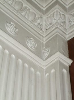 Left: A full restoration of Matlock town hall entrance area was carried out. These are a few pictures showing the damaged and cracked mouldings which had to be repairered. |