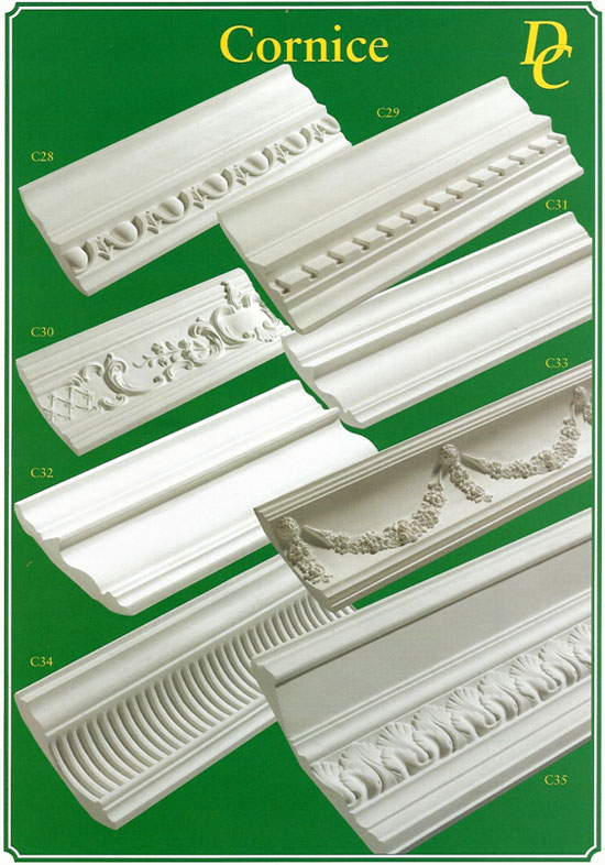 A sample of some cornices off the shelf. We have many more cornices to suit most areas.Beespoke cornices made to customer’s requirements and re-matching of original cornices and mouldings is our speciality. Browsing our website shows many examples of work carried out. ![]() A sample of some cornices of the shelf. Some fairly simple some a little more decorative. Most of our cornices come in 3mtr lengths and can be supplied or supplied and fitted. Prices on application. ![]() |