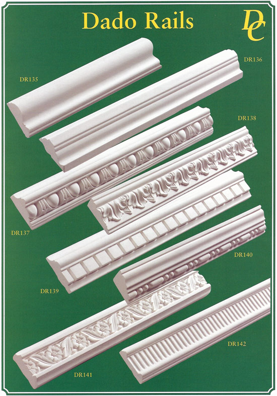 | Dado rails are still used in many homes today, splitting wall areas, giving peoples imagination with colours and wallpapers, a lease of life. Mixing and matching above and below the dado. The picture below shows a few samples of dado rails we supply, and fix if reqired. ![]() |