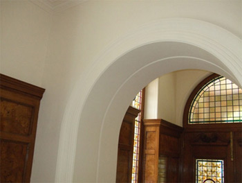 Above: Main arch way fully fitted, dressed and ready for decoration. All moulds were taken from original archway and reproduced to match, restoring the beautiful entrance back to its grandeur.