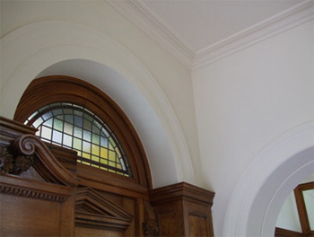 Below: The pictures below show the restoration work before and after. The mouldings around the arched window enhance the shape and brings it to life. |