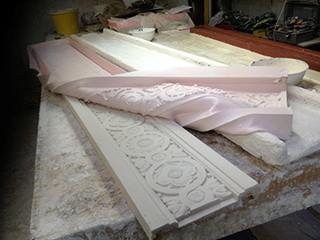 Three pictures showing just a few of the moulds which had to be made to carry out the work in the ballroom. |
