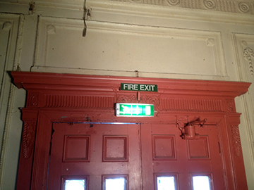 Left: shows the wall repaired, re-rendered and plastered by ourselves and the plain overdoor top moulding fitted as per original. Plus another wall panel repair. |