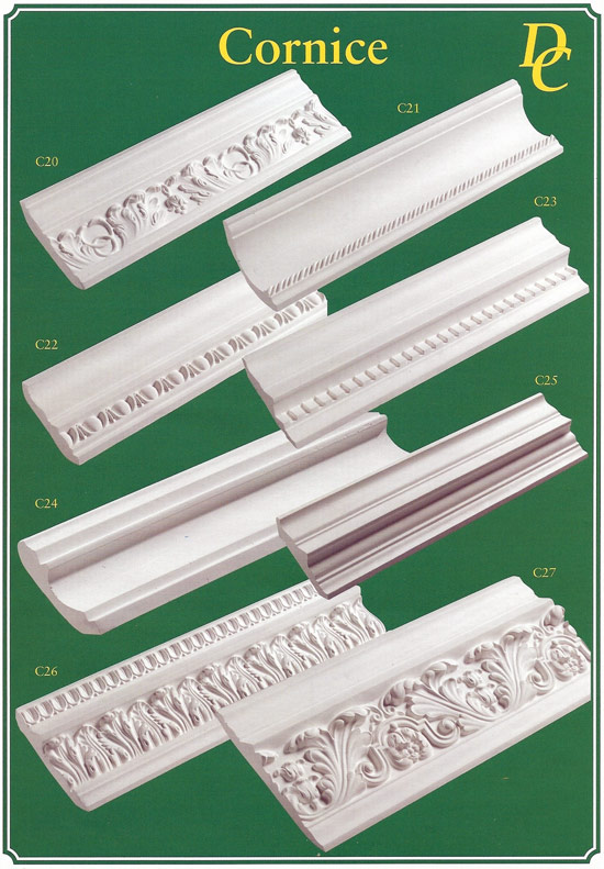 A sample of some cornices off the shelf. We have many more cornices to suit most areas.Beespoke cornices made to customer’s requirements and re-matching of original cornices and mouldings is our speciality. Browsing our website shows many examples of work carried out. ![]() A sample of some cornices of the shelf. Some fairly simple some a little more decorative. Most of our cornices come in 3mtr lengths and can be supplied or supplied and fitted. Prices on application. ![]() |