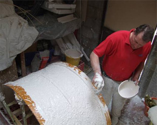 Below: Main archway being manufactured after the mould had been made in the workshop.