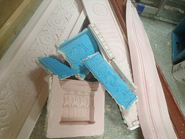 Three pictures showing just a few of the moulds which had to be made to carry out the work in the ballroom. |